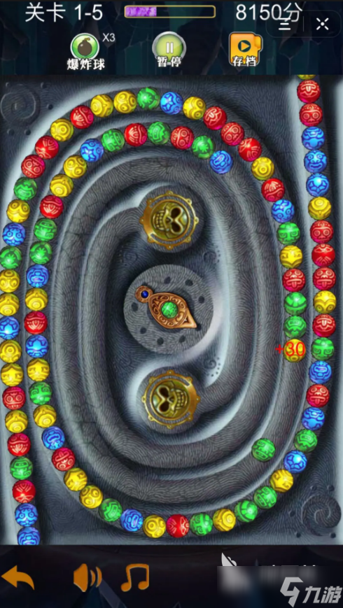 采用十分精彩的祖玛玩法,玩家需要发射不同颜色的弹珠在轨道中,当三个相同颜色的弹珠碰击在一起将会被消除,每消除三个弹珠就可以获得相应的分数,每一个关卡的弹珠数量都是不同的,总共有100多个关卡,玩家可以逐步的去解锁新的关卡,在新新的关卡中不断的去挑战自我,最后剩的弹珠数量越少,得分就会越高。